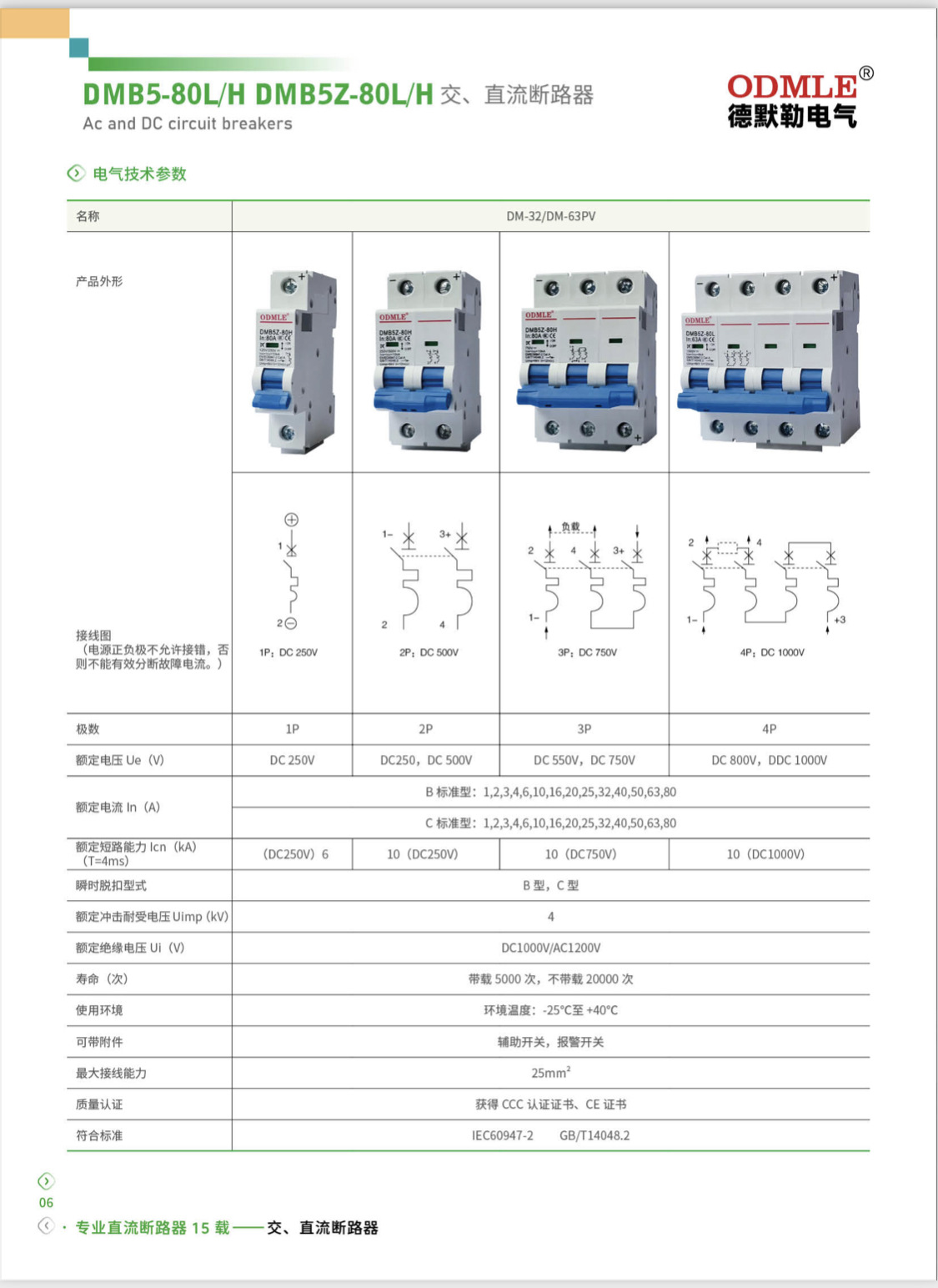 DMB5Z-80L/H 直流微型小型断路器光伏 专用生产厂家1-80A DC系列