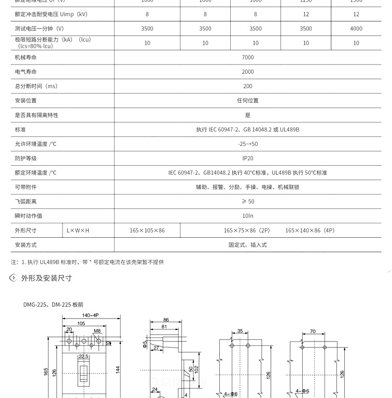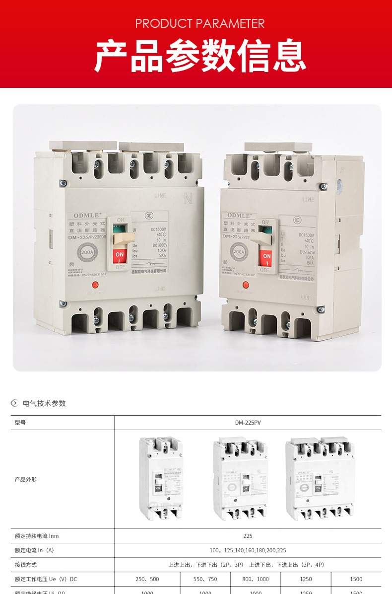 厂家直供应DM225塑壳断路器DC1000v低压光伏直流断路器2P