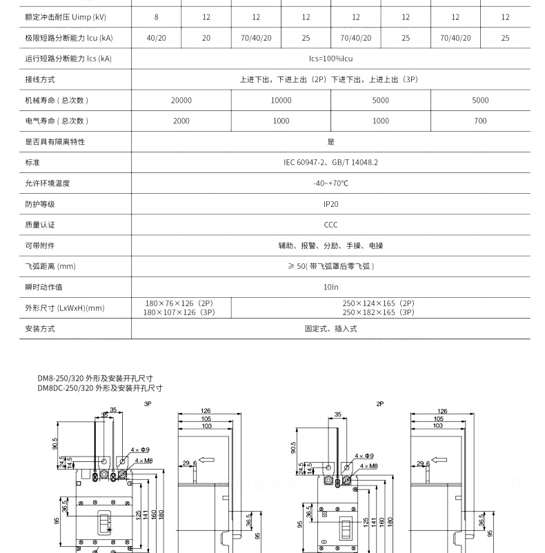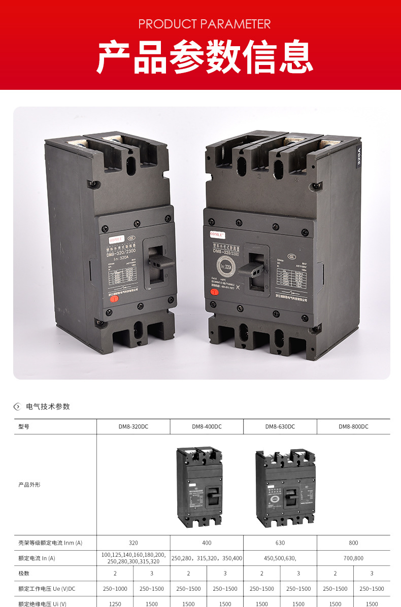 厂家直供DM8DC低压断路器1500V直流断路器100-800A塑壳断路器2-3P